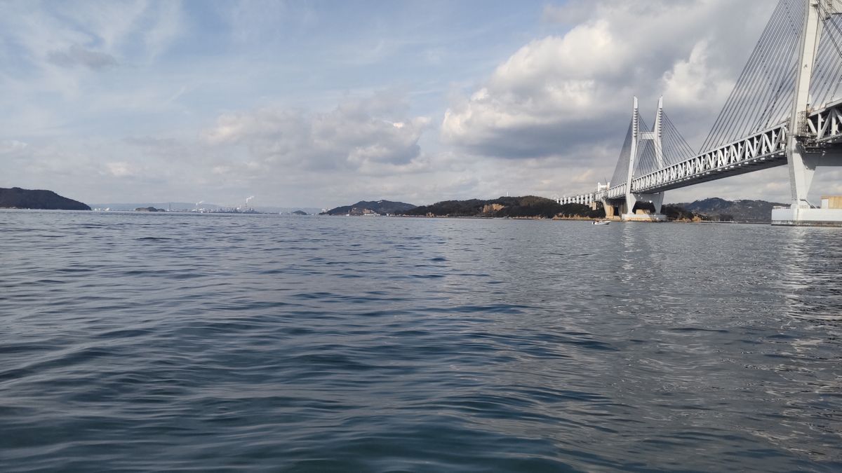 瀬戸大橋の周辺で釣ります。本日は穏やかな海でした。